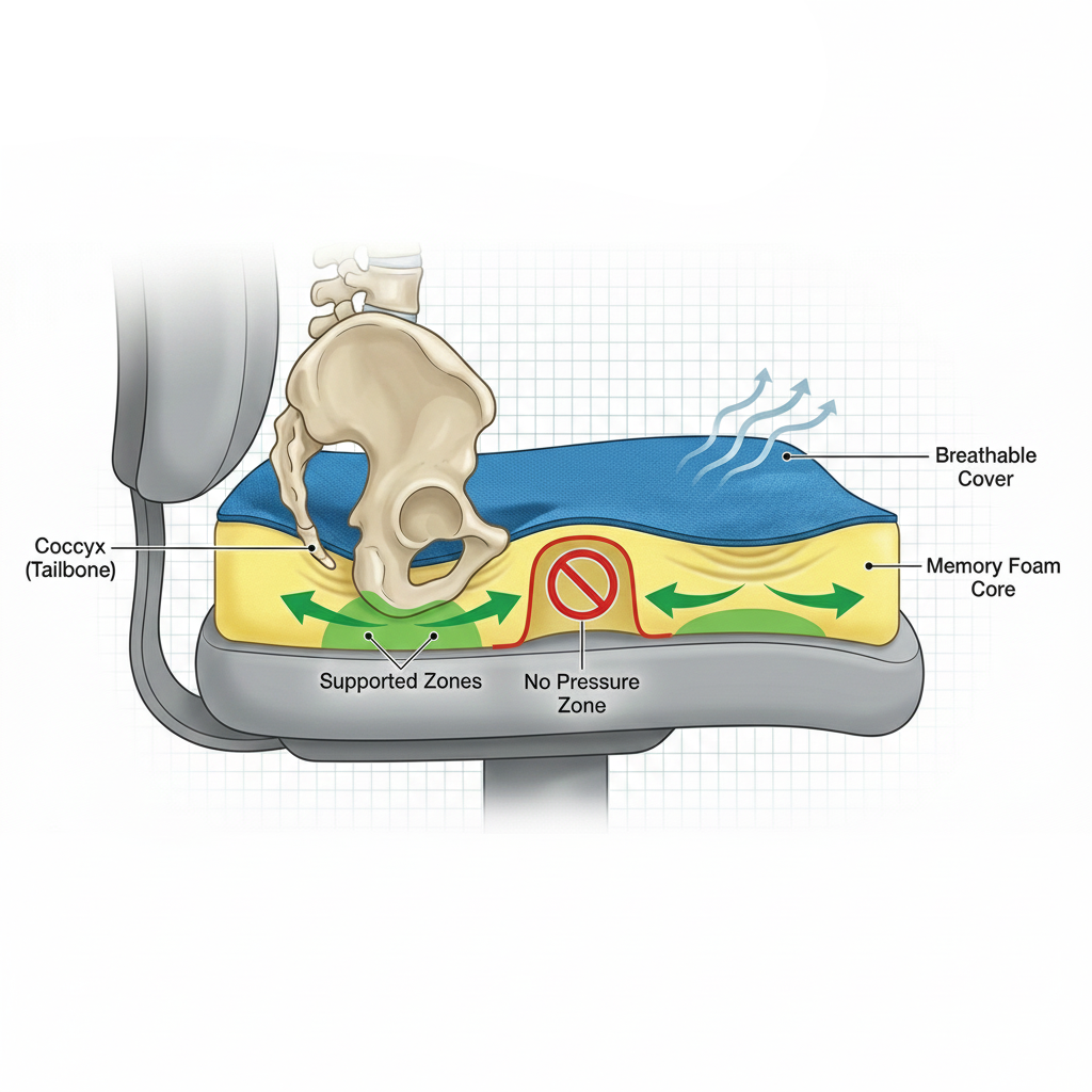 Question 1: What makes this cushion effective for tailbone pain relief?
